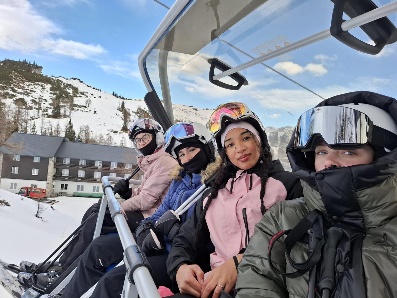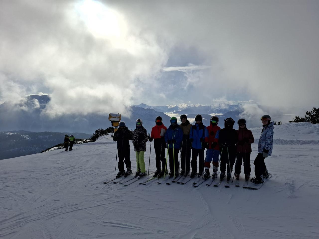 První den jsme byli rozřazeni do tří skupin, dle výkonnosti a lyžařských zkušeností. Tyto tři skupiny měli na starost učitelé Jaroslav Větrovský, Václav Lukeš, Marcela Cetlovská a Lucie Petráňová. Kromě samotného lyžování jsme si užívali i spoustu zábavy mimo sjezdovku. Večery byly plné smíchu, her a společných zážitků, na které budeme ještě dlouho vzpomínat. Nechyběly ani vtipné momenty z pádů na svahu nebo různých menších „nehod“, které ale vždy skončily smíchem. Celý kurz nás nejen naučil lépe lyžovat, ale také nás jako kolektiv víc stmelil. Odvážíme si spoustu krásných vzpomínek, nových zážitků, a hlavně skvělou náladu. Když jsme zrovna nebyli na pokoji, bylo možné hrát kulečník, stolní fotbálek, či ping pong. Lyžařský kurz v Tauplitzu byl jednoduše perfektní.