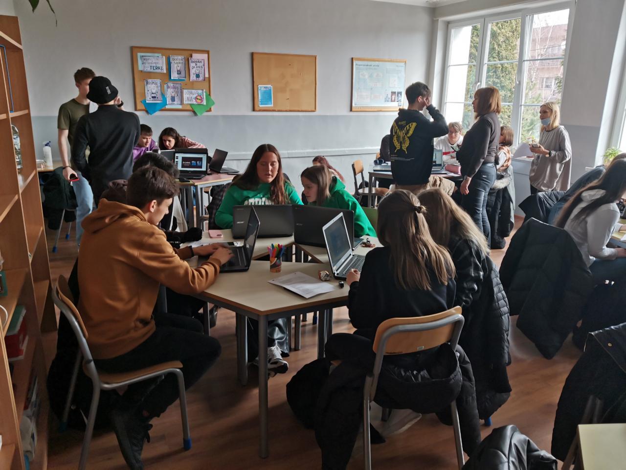 Druhý den ráno jsme poznali i Poláky z partnerské školy. V mezinárodních skupinách proběhly první seznamovací aktivity zaměřené na věci typické pro každého z nás. Proto se nám později lépe debatovalo na téma sportu, zdravého životního stylu a duševní pohody, které jsme si připravili předem. Odpoledne jsme si v centru města zahráli geolokační hru Actionbound, plnili jsme zadané úkoly a poznávali Rybnik.