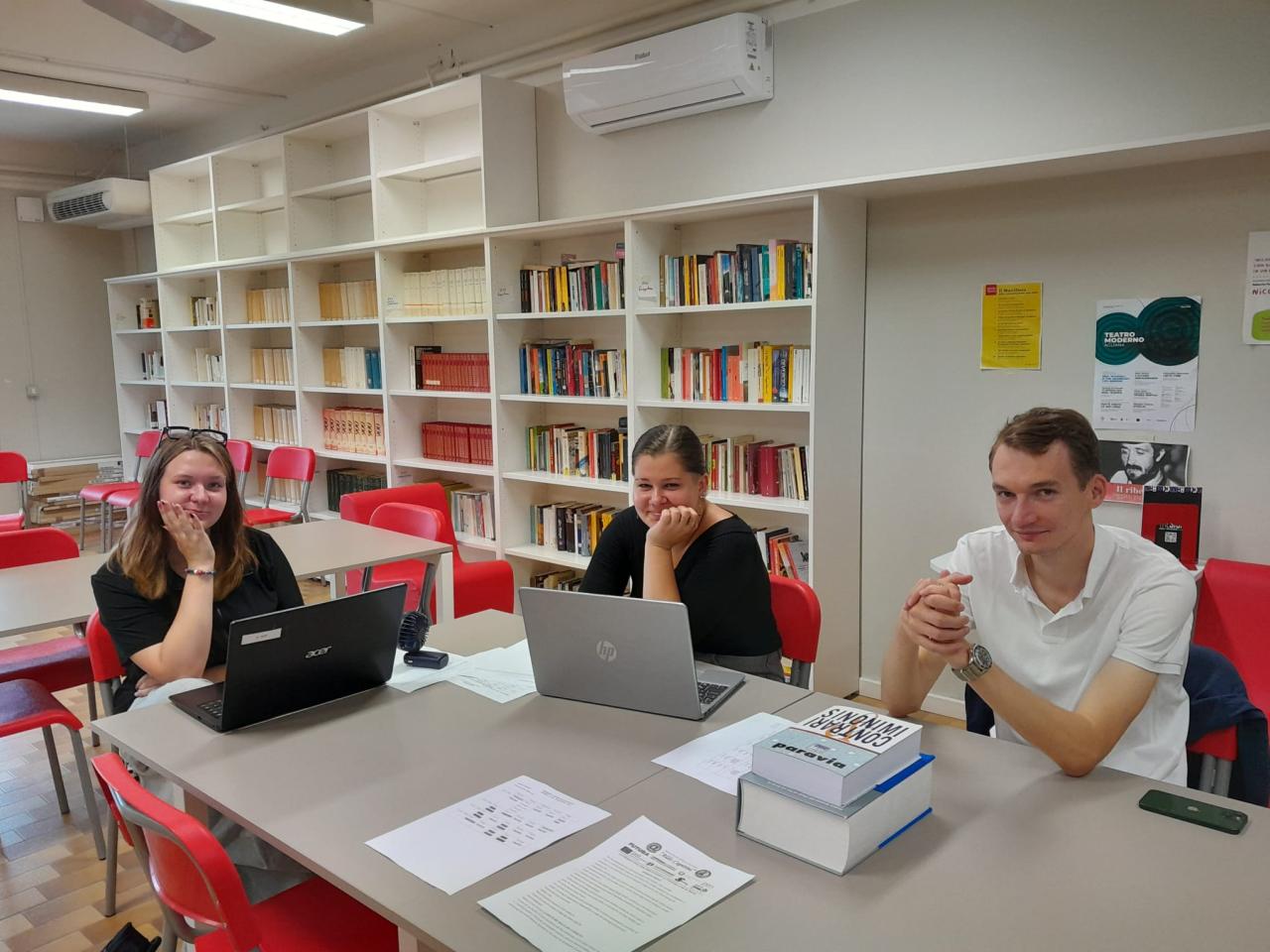 Hodiny pro nás byly trochu náročné, protože většinou byly celé v italštině. Ale učitelé nám vyšli vstříc a dávali nám přeložené učivo v angličtině. Snažili se nás zapojit do hodin i přesto, že neuměli anglicky.
